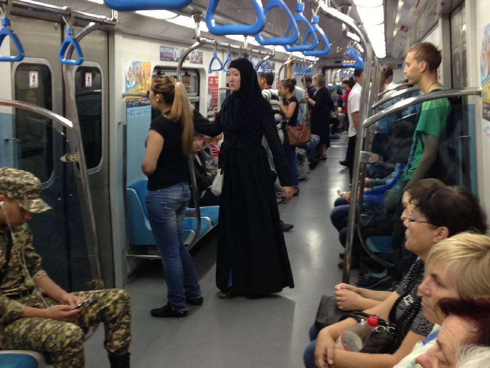 Из поликлиники мы поехали к станции метро. Стоящий у входа на станцию полицейский - парадная белая форма, руки в боки - лишь окинул меня беглым взглядом и посторонился, пропуская внутрь. Кассир спокойно продала мне жетон, и я, придерживая рукой разлетающиеся полы джильбаба, посеменила к платформе, с которой уходят поезда. Народу было немного, но ни один не оставил меня без внимания. Выйдя на одной из станций, я пересекла платформу и стала ждать поезд в обратном направлении. Здесь людей было уже больше, и мне приходилось буквально продираться, как сквозь заросли терновника, через их неодобрительные взгляды. Особенно запомнился высокий пожилой мужчина, который уставился на меня так, будто я не поезд жду, а как минимум дергаю за хвост бездомного котенка. В поезде я села напротив двух парней, которые всю дорогу пихали друг друга локтями, шептались и даже втихаря снимали меня на мобильный телефон (на всякий случай предупреждаю: увижу видео в Интернете - по судам затаскаю).