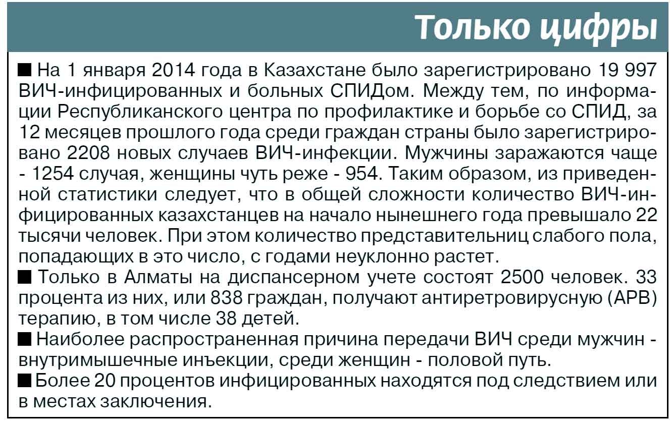 Конечно, никто из общественников не сможет сказать точно, о каких именно суммах идет речь. Но судить о масштабах проблемы можно, опираясь на официальные цифры, представленные Министерством здравоохранения и социального развития. Например, в 2013 году на мероприятия, связанные с противодействием ВИЧ-СПИД, было выделено более трех миллиардов тенге, треть из них - 1,2 миллиарда - ушла именно на проведение АРВ-терапии. Суммы, согласитесь, весьма существенные.