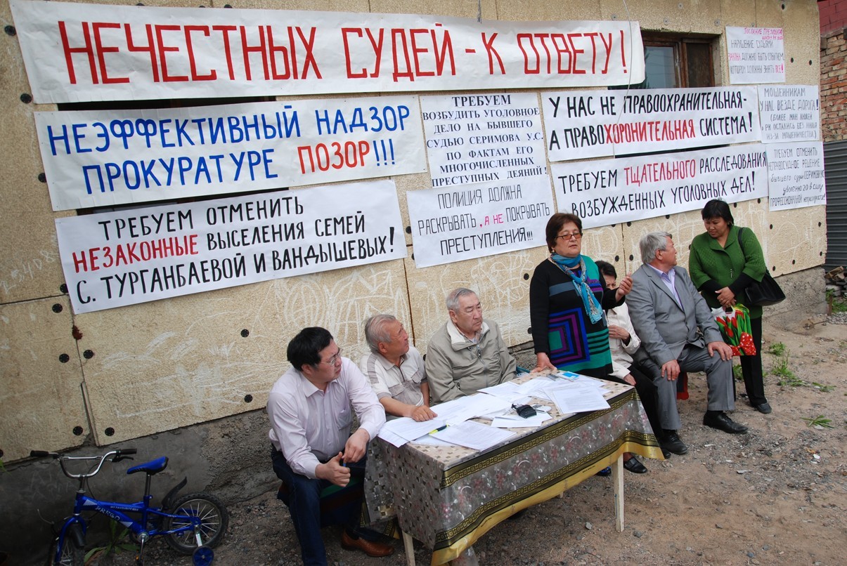 Активисты движения “За справедливость” требуют привлечь к уголовной ответственности бывшего судью Алатауского районного суда Алматы Умирзака СЕРИМОВА, из-за противоречивых решений которого пострадали десятки человек, а жительница микрорайона “Улжан” Светлана ТУРГАНБАЕВА совершила акт самосожжения. Об этом активисты заявили журналистам вчера в Алматы.