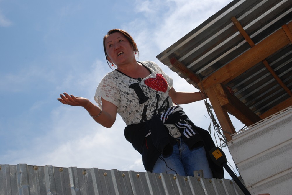 Пока одни торговцы общались с журналистами, другие залезли на крыши контейнеров с плакатами, а третьи держали оборону. Подъехавшую к рынку технику ближе чем на 20 метров они не подпустили, создав что-то наподобие живого щита. В какой-то момент у женщин сдали нервы: они начали пинать двери и колеса грузовиков, кричать на водителей, а затем и вовсе принесли бутылки с бензином и стали поливать горючим машины. Но, к счастью, не подожгли. Водители после этого спешно ретировались, сотрудники акимата и полицейские тоже постепенно разошлись.