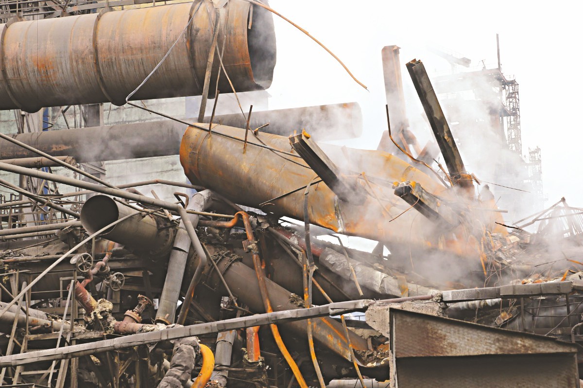 Спустя сутки после обрушения трубы удалось запустить один блок коксовых батарей (с первой по четвертую). Как сообщил заместитель исполнительного директора АО “АрселорМиттал Темиртау” по ремонтам Вадим БАСИН (на левом снимке), в системе газоснабжения комбината появился коксовый газ, который уже поставляется другим подразделениям предприятия.