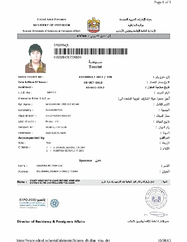- Мой сын Куаныш (его визу в ОАЭ - см. вверху. - Ред.) со своей женой и тремя детьми уехал в ОАЭ по путевке. Там живет моя дочь с зятем и четырьмя внуками, - говорит отец одного из “дубайских узников” Бердали УТЕШЕВ
