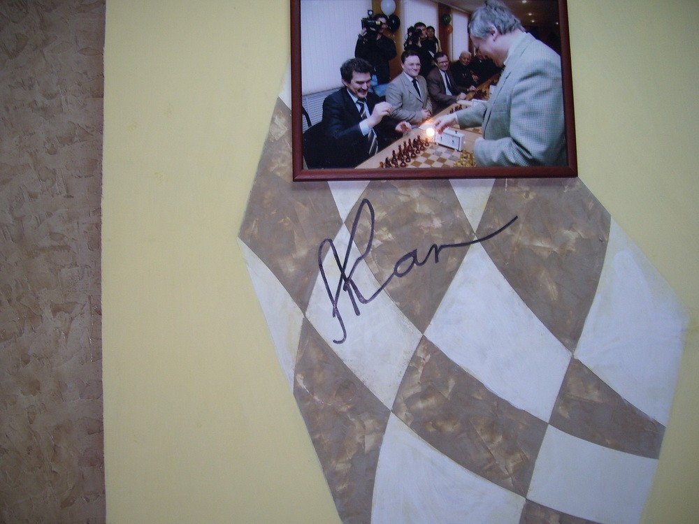 Спустя несколько дней дирекция клуба сообщила: все восстановлено! И вызвала новый огонь на себя. Удивленным взорам членов шахматного клуба предстала подпись Спасского, оттертая из-под слоя новой краски и обведенная черным фломастером чьей-то дрожащей рукой. А росчерк Карпова чудесным образом возник… на противоположной стене! Директор Сулейменов теперь уверяет шахматистов и местную прессу, что этот автограф “перенесли”. Каким образом - не говорит. Видимо, поэтому ему никто не верит. Да и каракули за карповские никто не признает.