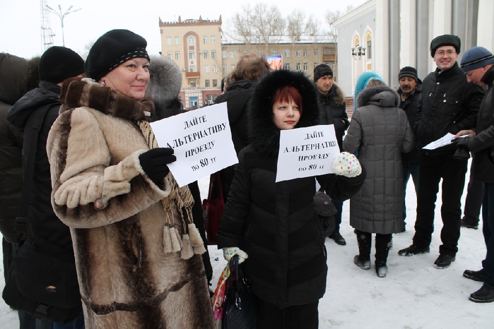 Вчера жители Караганды, недовольные повышением тарифа на проезд в общественном транспорте до 80 тенге, устроили в центре города шествие. Люди не хотят ездить в автобусах за такую цену, при этом местные власти запретили водителям маршруток возить пассажиров по прежней стоимости 50 тенге (см. “Но вот он - перегиб и парадокс”, “Время” от 8.1.2014 г.).