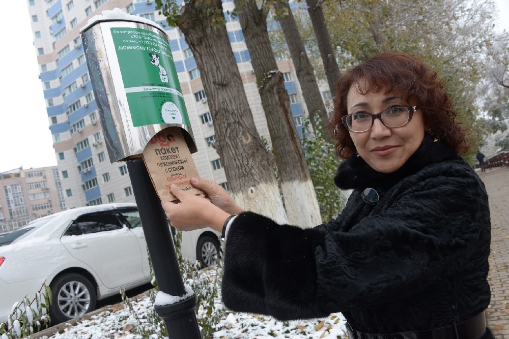 Если вы выгуливаете свою собаку на городских улицах, то извольте и убирать за ней, считает алматинка Гульжан САБЫКЕНОВА (на снимке). Она стала инициатором акции “Любимому городу - чистый газон”. На одной из алматинских аллей, где владельцы собак выгуливают своих питомцев, Гульжан за свои деньги установила необычный ящик с бесплатными пакетами и картонными совочками для собачьих экскрементов.