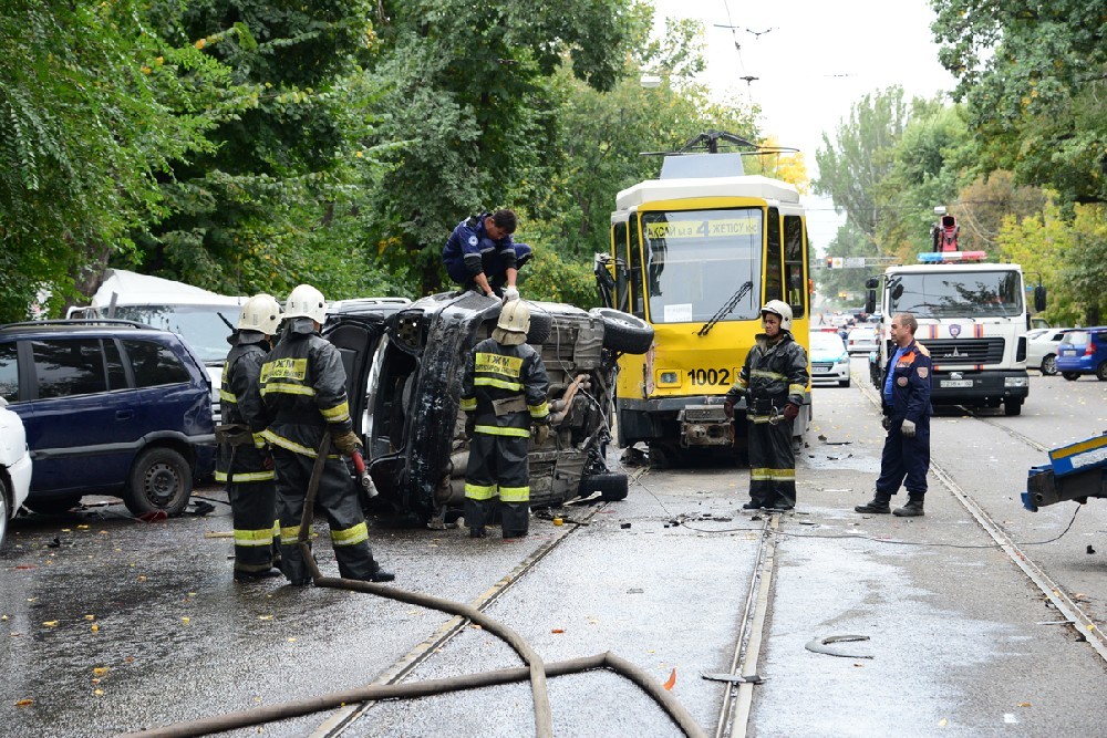 - В 11.22 на пульт “скорой” поступило сообщение о том, что на пересечении улиц Байтурсынова - Карасай батыра произошло массовое ДТП, - рассказывает заместитель главного врача по лечебной работе Алматинской станции скорой помощи Александр ЛАЗАРЕВ. - Туда сразу же выехало четыре бригады. В “скорую” позвонила вагоновожатая, видимо, коллега той, что управляла в тот момент трамваем, и сказала: у маршрута № 4 отказали тормоза. Сама водитель из него выпрыгнула, а трамвай поехал дальше. Мы приехали на место происшествия самыми первыми, там уже собрались люди, которые тушили одну из машин, благо что возгорание было несильным. Самые серьезные травмы получила женщина, сидевшая за рулем одной из легковушек, которые собрал на своем пути трамвай. Нам пришлось ждать, пока подъедут сотрудники ЧС и достанут пострадавшую из автомобиля при помощи специального оборудования. Как только ее удалось извлечь, мы тут же доставили женщину в четвертую горбольницу. Она была в тяжелом состоянии. Кроме нее в различные медучреждения мы доставили еще четырех человек, то есть в общей сложности госпитализировали пятерых.