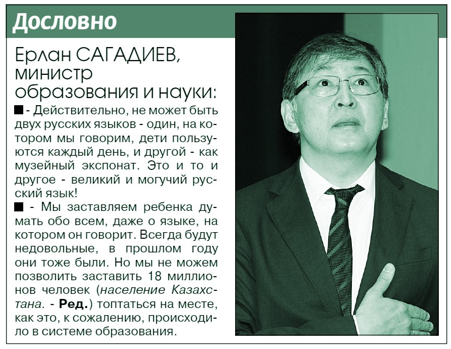 Глава МОН в тот момент, видимо, был убежден, что перетянул на свою сторону часть не согласных с ним парламентариев, в том числе и Ирину СМИРНОВУ, депутата мажилиса от фракции “Народные коммунисты”, самую активную радетельницу учебника “чистого” русского языка. Министерство на днях предложило ей принять деятельное участие в экспертизе новых учебников для 3, 6 и 8-х классов.