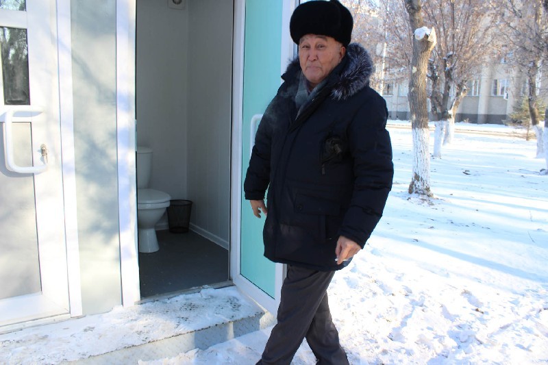 - К биотуалету подведены все коммуникации: вода, канализация, отопление, имеется вытяжка, - искренне радовался завсектором благоустройства и озеленения горотдела ЖКХ Асылхан КОПЕШЕВ (на снимке). - Материалы покупали за рубежом, но и казахстанское содержание тут тоже есть.