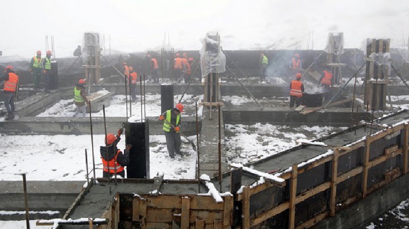 Строительные работы на горнолыжной базе выполнены на 60 процентов. На данный момент возводятся коттеджи для отдыхающих и сервисные комплексы по обслуживанию туристов. Проложено семь километров дороги, подводится вся необходимая инфраструктура. Оборудование доставлено. Строители трудятся, несмотря на неблагоприятные погодные условия, днем и ночью.