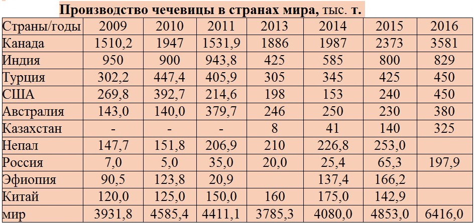 Наша страна стремительно вошла на мировой рынок чечевицы. Это обусловлено быстрым ростом мирового спроса на чечевицу, превысившим 3,2 млн. т. Драйвером роста стали Индия, Турция, Пакистан, Бангладеш, где за последние 15 лет спрос вырос до 1,3 млн. т.