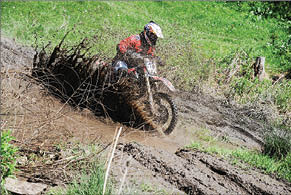 - Песочные трассы уже хорошо известны нашим участникам, поэтому сейчас мы решили провести гонку в другом формате, - говорит организатор соревнований Андрей ВОРОНЦОВ. - Специально искали такое место, где было бы все: вода, грязь, пыль, трава, деревья. Английское слово enduro переводится как “вынести, выдержать, вытерпеть”. Смысл состязаний - пройти через множество испытаний по бездорожью и преодолеть разными способами (от “спортсмен на мотоцикле” до “мотоцикл на спортсмене”) расстояние в сотни километров. Мы еще, конечно, не доросли до такого уровня, но постепенно набираем обороты.