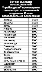 По информации, распространенной Союзом автовладельцев Казахстана, “проходной взнос” колеблется от 2 тысяч тенге в Северо-Казахстанской области до 3,5 тысячи - в Алматы.