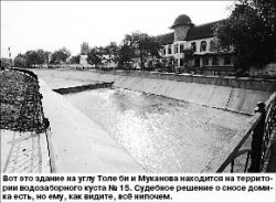 Об этом мы узнали в ходе расследования, проведенного по просьбе читателей. Они просили выяснить: насколько законно на территории водозаборных кустов (водозаборный узел со скважинами, насосными станциями, инженерными коммуникациями. - Ред.) идут стройки? В частности, на объекте № 15, что находится на пересечении проспекта Толе би и улицы Муканова, вдоль речки Весновки, уже фактически построено трехэтажное здание кафе. На территории куста № 1 в микрорайоне “Аксай-4” вырыт огромный котлован под будущую стройку.