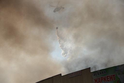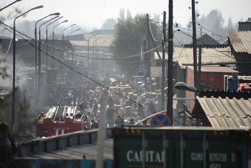 На Алматинской барахолке снова крупный пожар. В настоящее время огнем охвачены рынки «Кулагер» и «Арал».