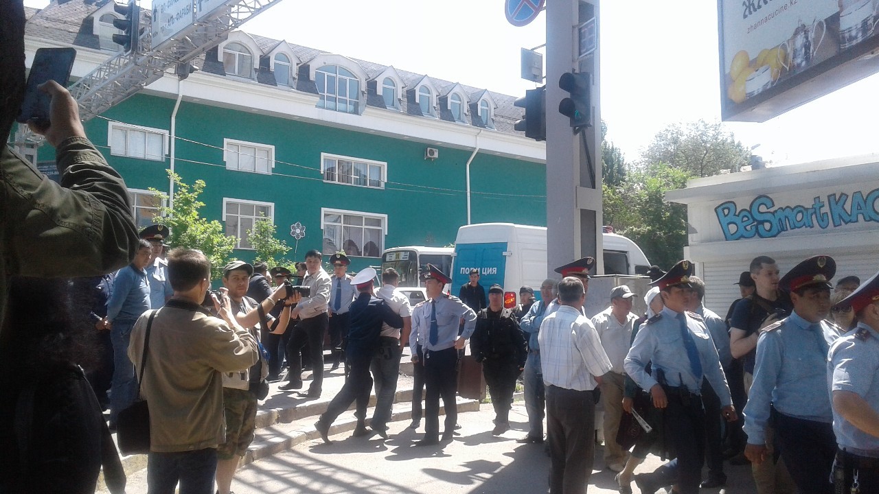 Площадь Республики, на которой протестанты планировали провести акцию, а также квадрат улиц Фурманова-Сатпаева-Желтоксан-Абая с самого утра были оцеплена полицией. Стражи порядка останавливали любого, кто вызывал у них подозрение. Так среди задержанных оказался и фотокорреспондент газеты "Время" Роман ЕГОРОВ - его доставили в Бостандыкское УВД, но вскоре после вмешательства руководителя пресс-службы ДВД Салтанат АЗИРБЕК отпустили.