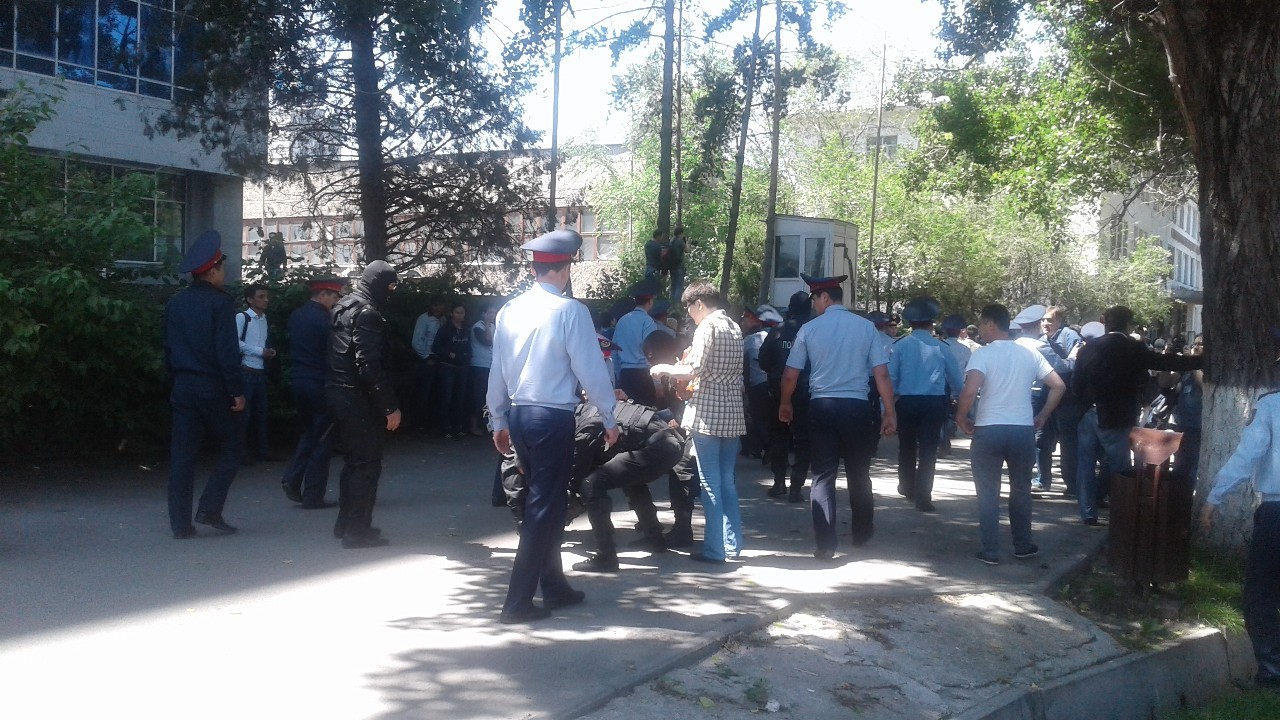 Один из сотрудников попытался отобрать мобильный телефон у автора этих строк: мол, на каком основании вы фотографируете? Но, увидев служебное удостоверение журналиста, лейтенант чуть успокоился, но все-таки пригрозил проблемами, если буду "выпендриваться". Моим коллегам повезло меньше: в числе задержанных оказались несколько корреспондентов других изданий, некоторые из них были доставлены аж в Алатауское УВД.