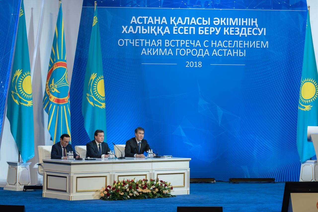 На отчетной встрече аким города представил доклад об итогах социально-экономического развития Астаны за 2017 год, проинформировал о планах на текущий год, рассказал о мерах по решению актуальных вопросов, волнующих горожан.