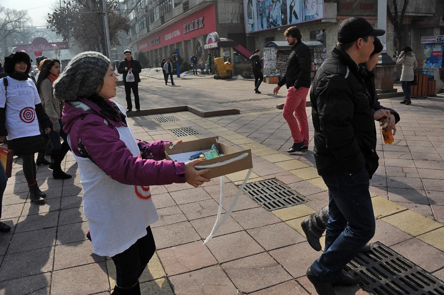 Более десятка девушек пели песни и просили у прохожих подаяния – нет, не для себя, а для Государственного фонда социального страхования. Ведь если не пересмотреть порядок начисления «декретных», то к 2025 году фонд может обанкротиться - об этом заявлял как президент ГФСС Алмас КУРМАНОВ, так и депутаты парламента, принявшие новый закон. Чтобы этого не произошло, активистки решили собрать немного денег в помощь ГФСС. Сумма получилась символичная – 8 888 тенге. В ближайшее время эти деньги будут отправлены в Астану лично г-ну Курманову. Более подробно об акции читайте во вторник в газете «Время».