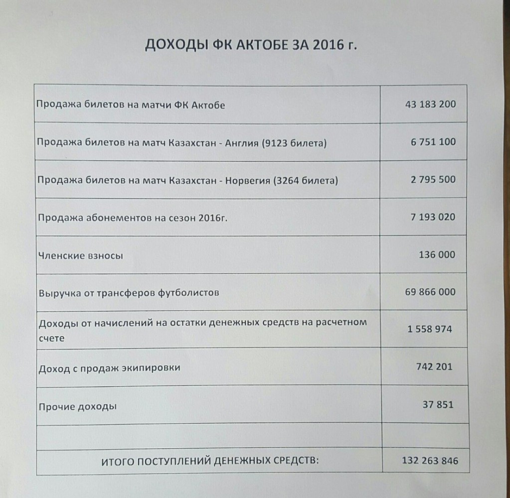 В понедельник были обнародованы и собственные доходы клуба за год - свыше 132 миллионов тенге. Эти деньги были заработаны, главным образом, от продажи хороших, по казахстанским меркам, футболистов в другие команды и, частично, от продажи билетов.