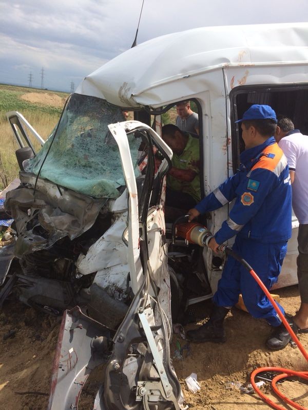 Как сообщили в прокуратуре Алматинской области, водитель автомобиля Toyota Granvia, двигавшегося в сторону Алматы, не справившись с управлением, выехал на полосу встречного движения и совершил столкновение с микроавтобусом Mercedes-Benz Sprinter, водитель которого занимался частным извозом.