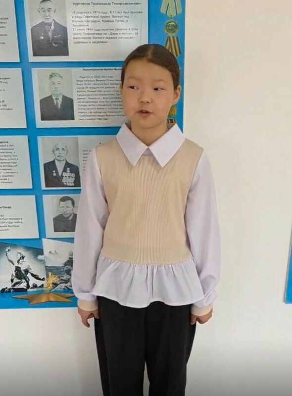 Пятиклассница Анель КАЗБЕКОВА рассказала о своем прадедушке, ветеране Великой Отечественной войны Саду БЕКМАГАНБЕТОВЕ.