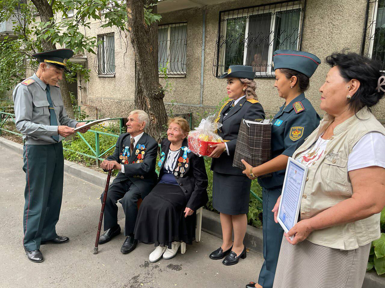 Поздравить именинника представители алматинского филиала РОО "Ветераны Вооруженных сил РК" и Национального центра военно-патриотического воспитания пришли с оркестром. Вручили юбиляру поздравительное письмо от министра обороны. И исполнили песни военных лет, чем очень растрогали фронтовика.