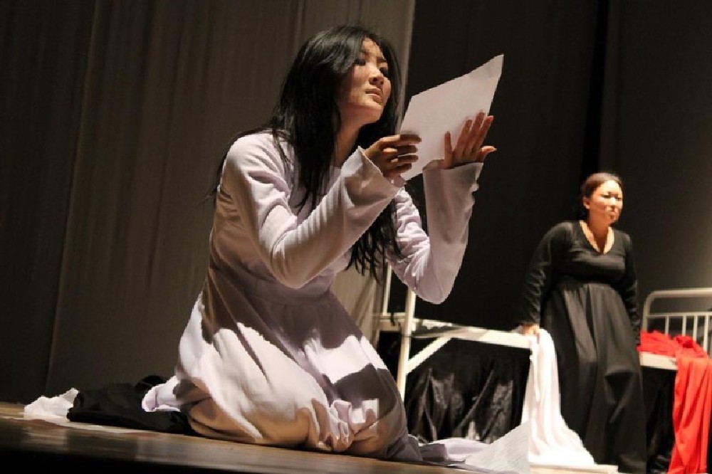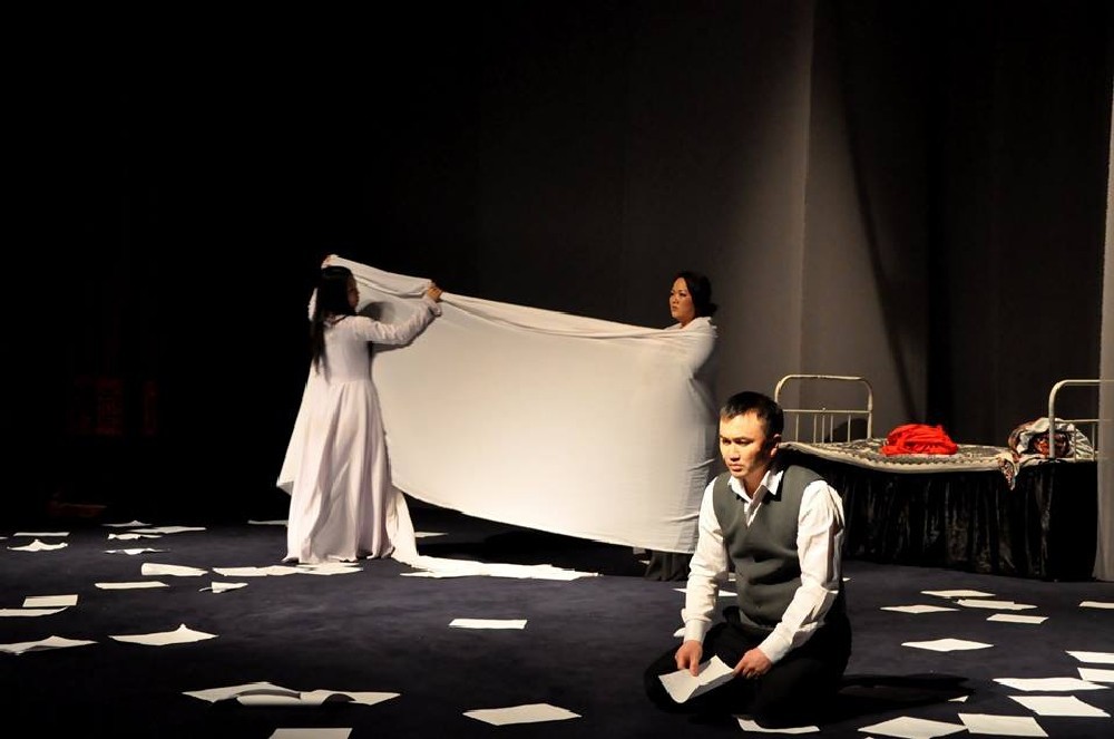 - Наш спектакль - это посвящение всем репрессированным представителям интеллигенции и, конечно же, их женам, которые смогли сохранить свою любовь, преданность мужьям, несмотря ни на что, - рассказывает режиссер постановки Елена КИМ, сыгравшая роль главной героини. - Действие происходит в трех временных отрезках: настоящее, прошлое и будущее. Было непросто это обыграть, но мы нашли выход в необычном световом решении и пластических элементах. К примеру, Злиха в молодости не произносит на сцене ни слова, все эмоции она выражает в танце. Еще один интересный момент - роль главного героя поэта Магжана сыграл уйгур Алишер МАХПИРОВ. Он блестяще владеет корейским языком, и жюри высоко оценило его манеру чтения стихов Жумабаева на казахском языке. Алишер удостоился приза зрительских симпатий.