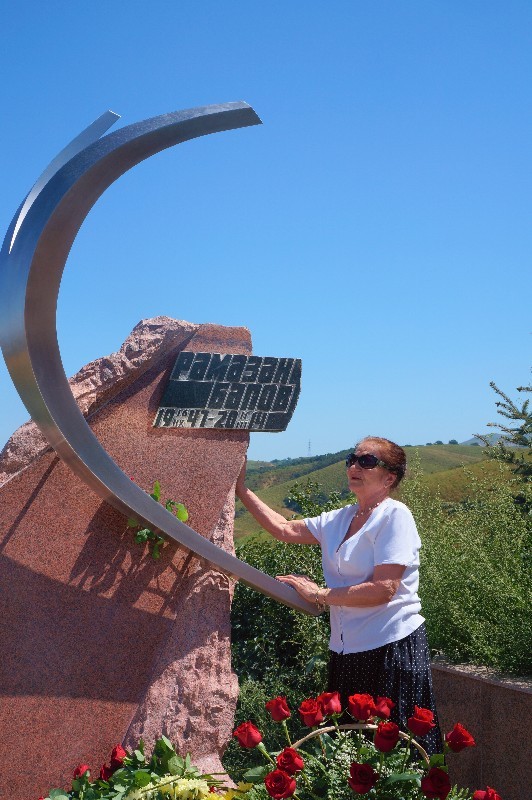Бибигуль ТУЛЕГЕНОВА и Алибек ДНИШЕВ на могиле Рамазана БАПОВА.