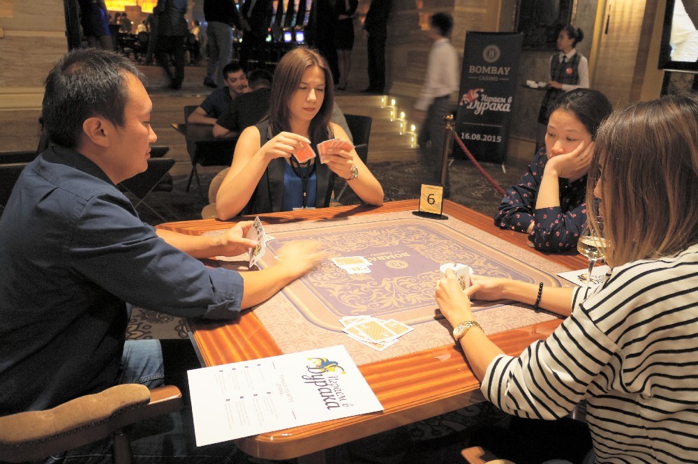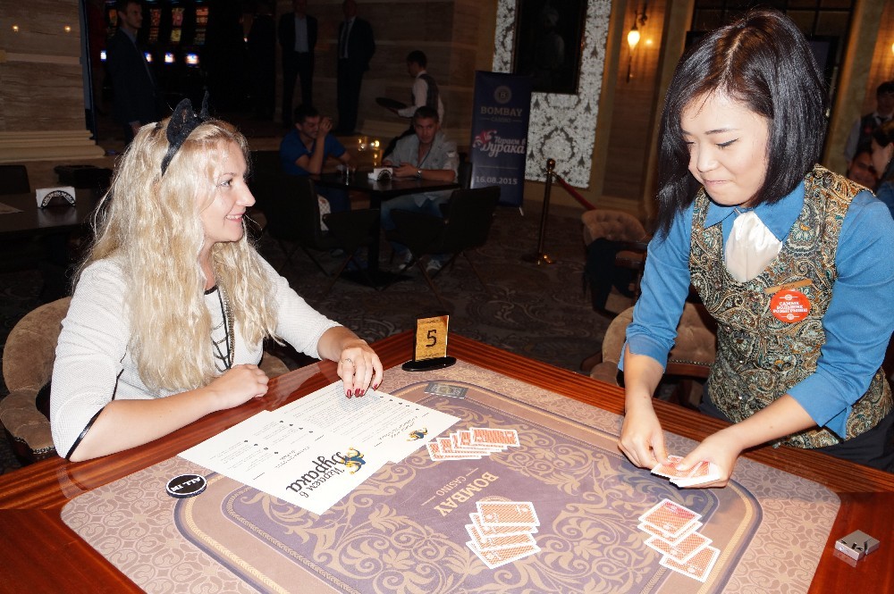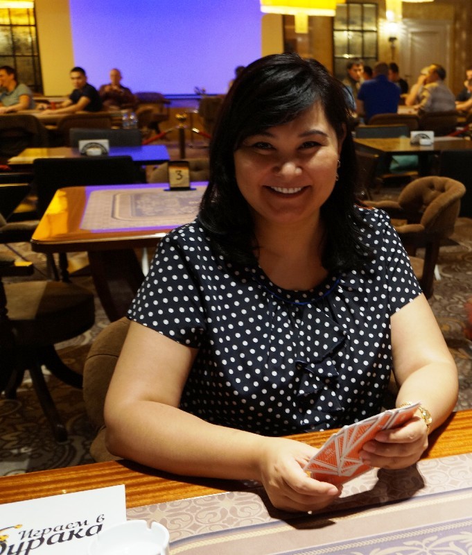 Диана так расстроилась, что организаторы приняли решение провести шуточный турнир “Оставь дурака в дураках”, в котором вылетевшие игроки вновь сели за столы. Пока игроки отдыхали и попивали кофе, проигравшие вовсю резались. К слову сказать, страсти за столами кипели нешуточные. Самой умной среди “дураков” стала журналистка Асем КАЛЫМБЕТОВА.