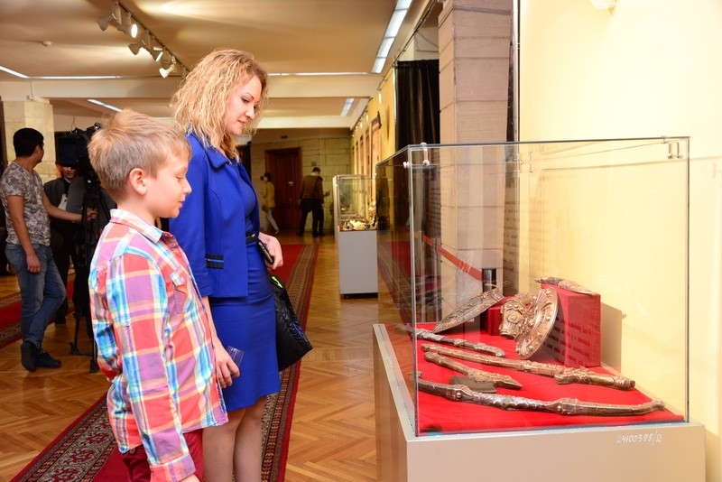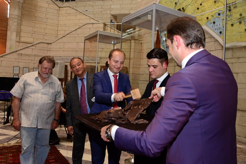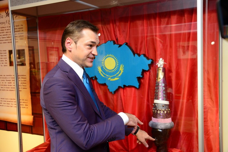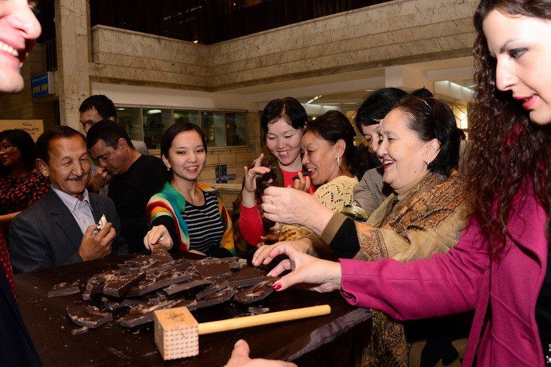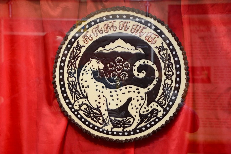 В правдивости слов мастера посетители убедились, увидев сотворенные из шоколада копии золотых украшений из запасников музея: головной убор “Золотого человека”, казахстанский герб и другие экспонаты, посвященные Казахстану.