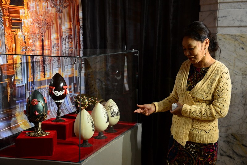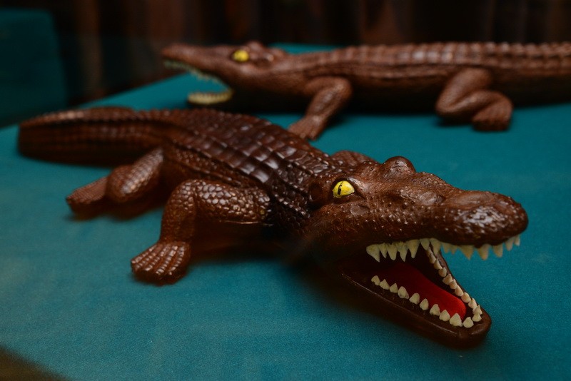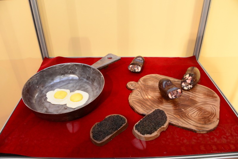 Полет фантазии мастера Николая не знает границ. Среди экспонатов - шоколадные двухметровая Эйфелева башня, египетская пирамида, 40-килограммовый рояль, динозавры, яйца Фаберже, карета, короны Российской империи, оружие XVIII и XXI веков, картины и многое другое.
