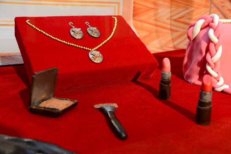 - Сложнее всего было делать убор “Золотого человека”, - делится Николай. - Мне приходилось спускаться в зал и всматриваться в оригинал, потом я бежал в мастерскую и там воспроизводил, что запомнил. Мы выдержали визуально картинку, но настоящий убор, конечно, лучше (смеется)! С золотыми украшениями тоже пришлось повозиться. Оригиналы были такими хрупкими, что сделать слепки было совершенно невозможно. Приходилось срисовывать, фотографировать и делать форму для заливки шоколада с нуля. На все это ушло три дня.