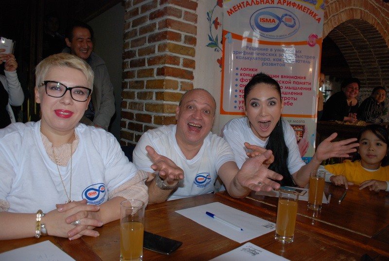 Вызов от учеников школы ментальной арифметики приняли шоумен Роман АЛЬМАНСКИЙ, телеведущая Диана СНЕГИНА, фокусник Мурат МУТУРГАНОВ, певица Айнура ЕШМАНОВА.