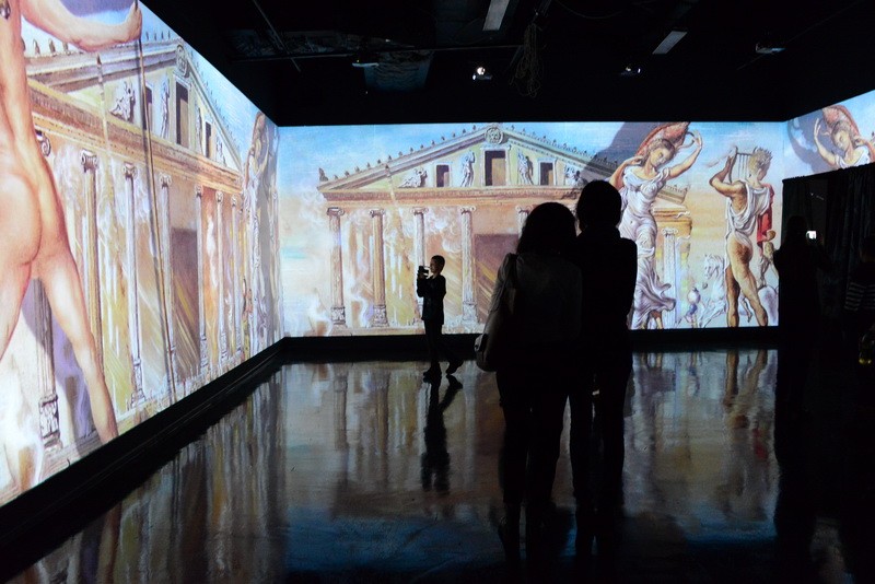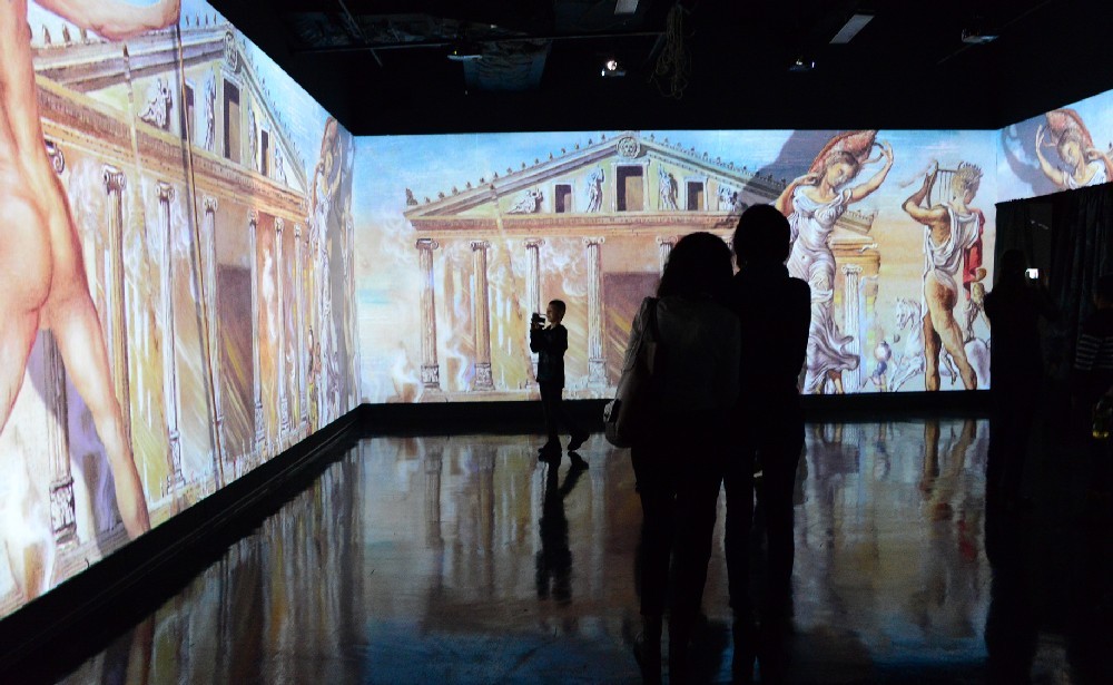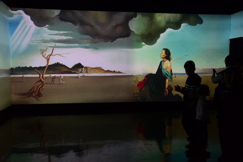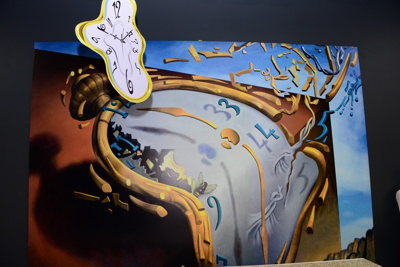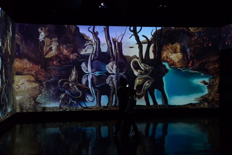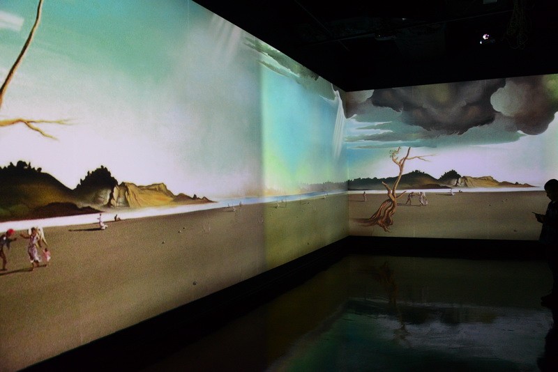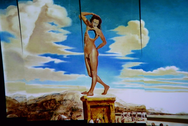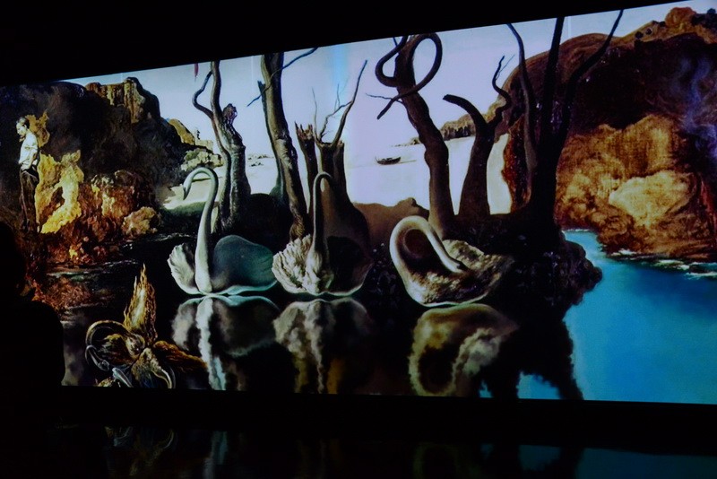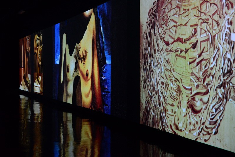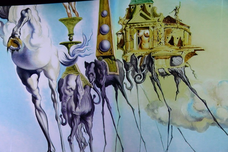 Картины плывут по кругу, и у зрителя создается впечатление, что выставка бесконечная. Вместе с плящущими фламенко, моргающими глазами, мащущими хоботами слонами зритель словно проникает в суть творчества художника и переносится в неизведанный мир фантазий.