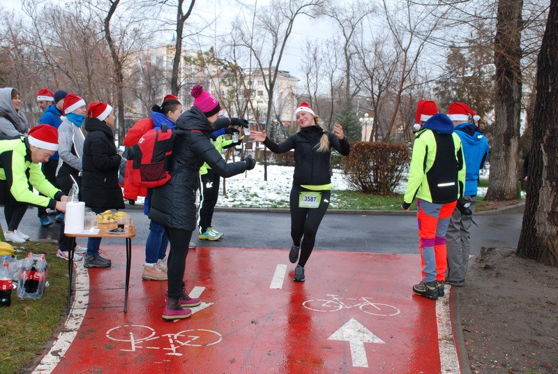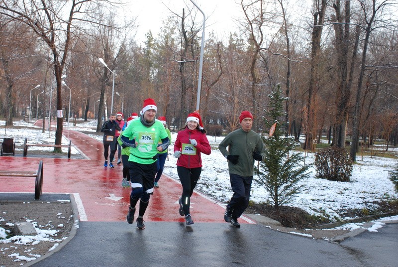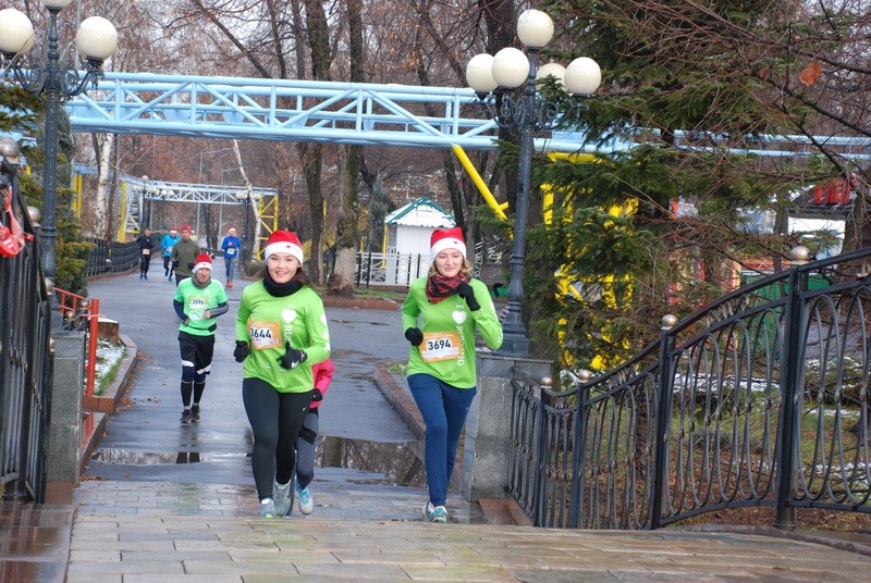 Несмотря на нелетную погоду, ранним утром в городском Центральном парке культуры и отдыха высадился десант Санта-Клаусов. Не обращая внимания на удивленные взгляды посетителей, они лихо наматывали круги. Участники разделились на две категории: одни бежали 12 километров, другие - полумарафон (21 километр 97,5 метра).