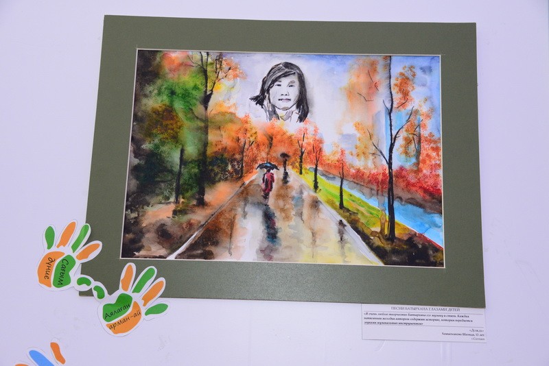 Проект стартовал в сентябре. В нем приняли участие ребята в возрасте от 10 до 15 лет, которые попытались в своих работах отразить личное восприятие и понимание творчества певца и композитора Батырхана ШУКЕНОВА. Из 300 картин жюри отобрало 109, из которых и была создана экспозиция.