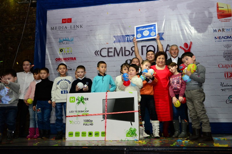Супруги приехали на награждение с детьми. Когда они поднялись на сцену, зал встретил их продолжительными аплодисментами. Было сказано много теплых слов в адрес Туяк и Ануарбека, которые скромно улыбались и благодарили всех за признание. Победителям вручили большой телевизор.