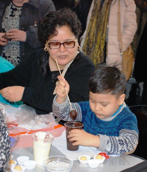 На мастер-класс пришли как дети, так и взрослые. Шоколатье Оксана КИМ рассказала собравшимся немного об истории шоколада, как с ним работать, а также раскрыла некоторые секреты оформления пирожных.