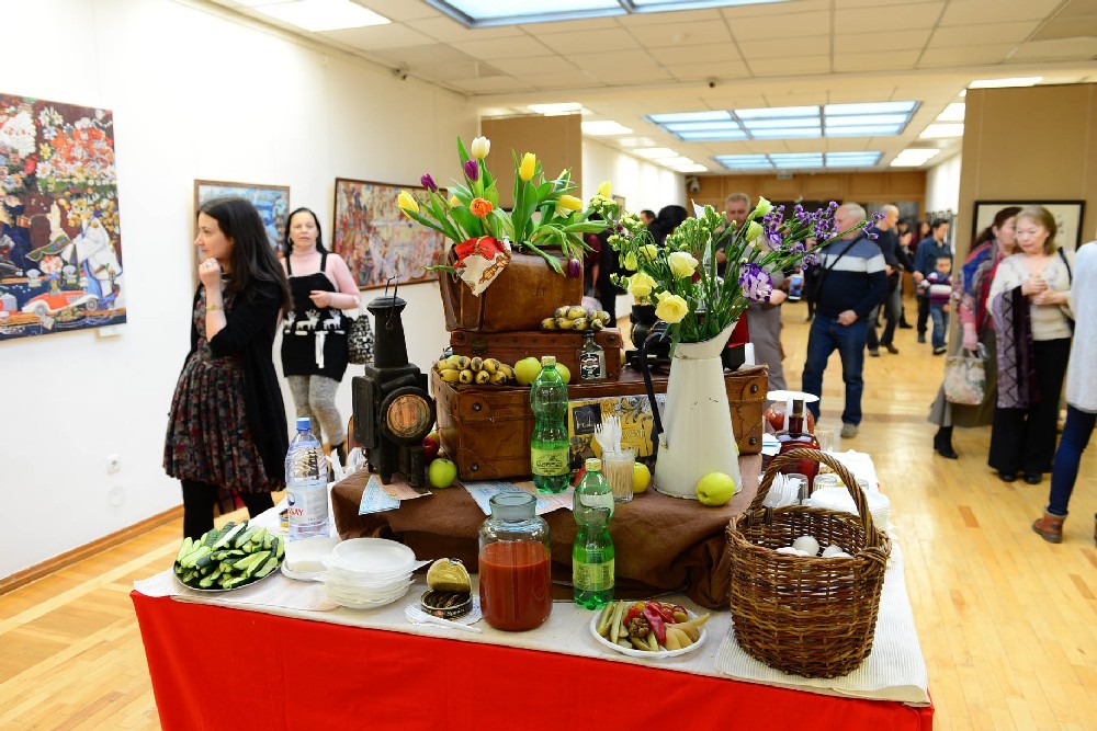 На открытии можно было не только насладиться творчеством гостей из Санкт-Петербурга, но и попробовать их съедобные натюрморты с фирменной фроловской настойкой.
