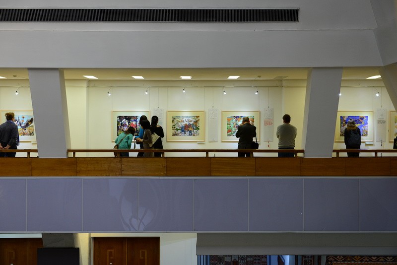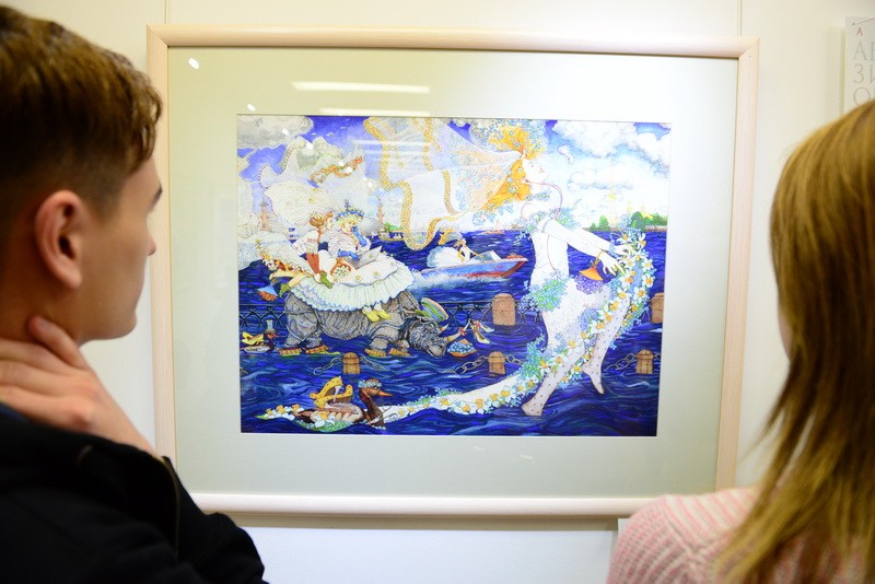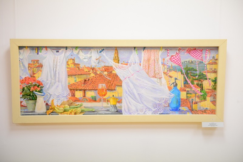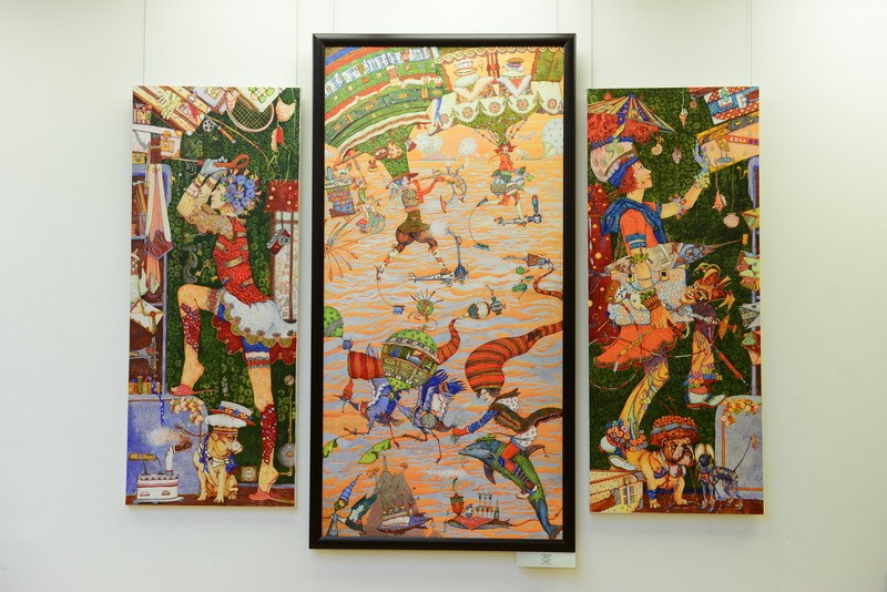 На экспозиции глаза разбегаются от ярких красок, сказочных историй на картинах Петра и солнечного света, льющегося с полотен Натальи.