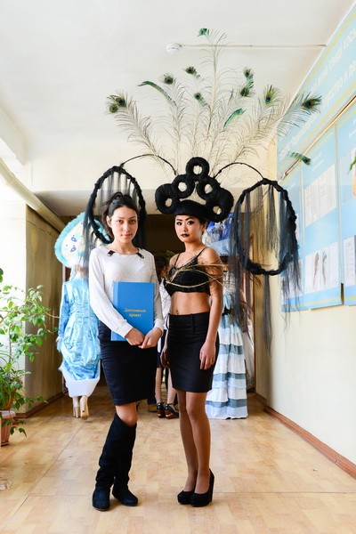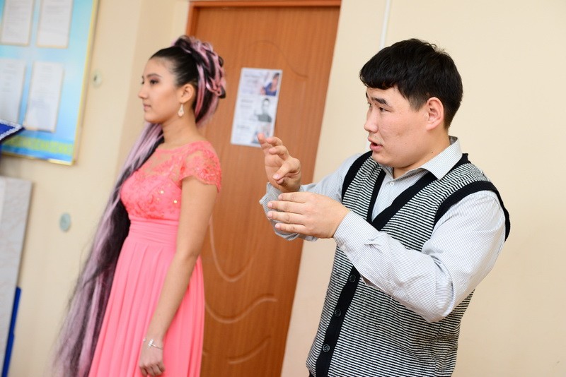 - Это ребята из инклюзивной группы, - приходит на помощь преподаватель спецдисциплин Галина АГАНИНА. - Они слабослышащие, но при этом необыкновенно талантливые. У них фантастические работы. К примеру, Абай КАЛМАН, с которым вы говорили, делает интересные мужские прически, а Жаннат КАМЕЛБЕК плетет дреды лучше девушек.