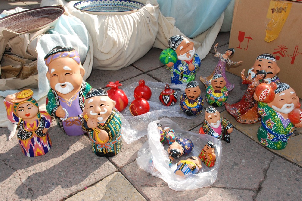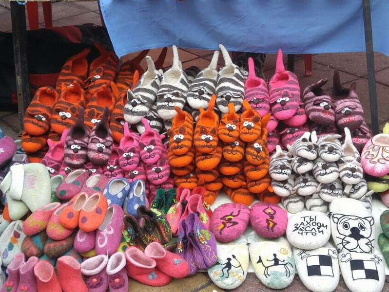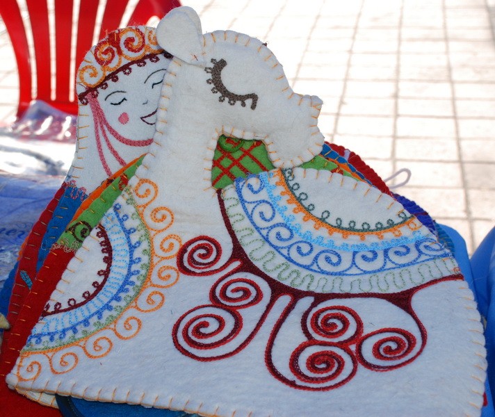От разнообразия товара глаза разбегались. Узбекские мастера традиционно привезли посуду, а киргизские - изделия из войлока.