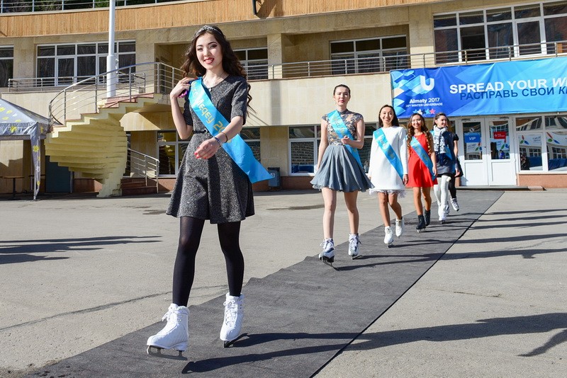 Конкурсантки дефилировали в нарядах, демонстрировали таланты в творческом конкурсе, состязались в ловкости и быстроте в спортивных номинациях. Но, пожалуй, главной особенностью конкурса было то, что девушки за день до финала попробовали себя в качестве сотрудников катка. К примеру, Сандина БИСЕН и Мадина АХМЕТОВА узнали тонкости заточки коньков.