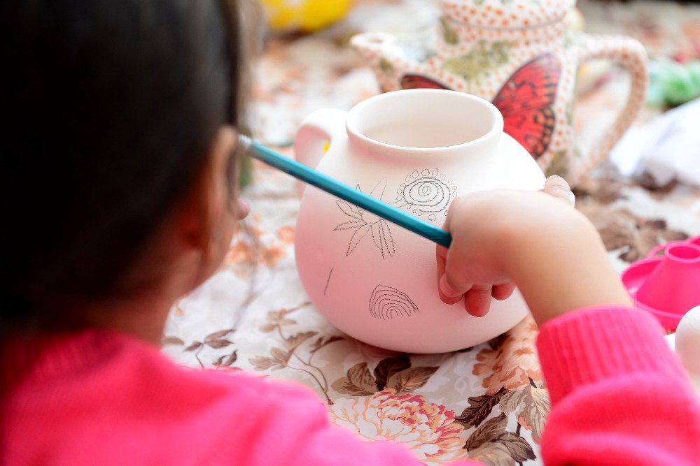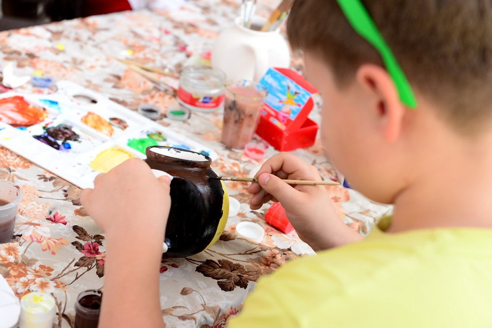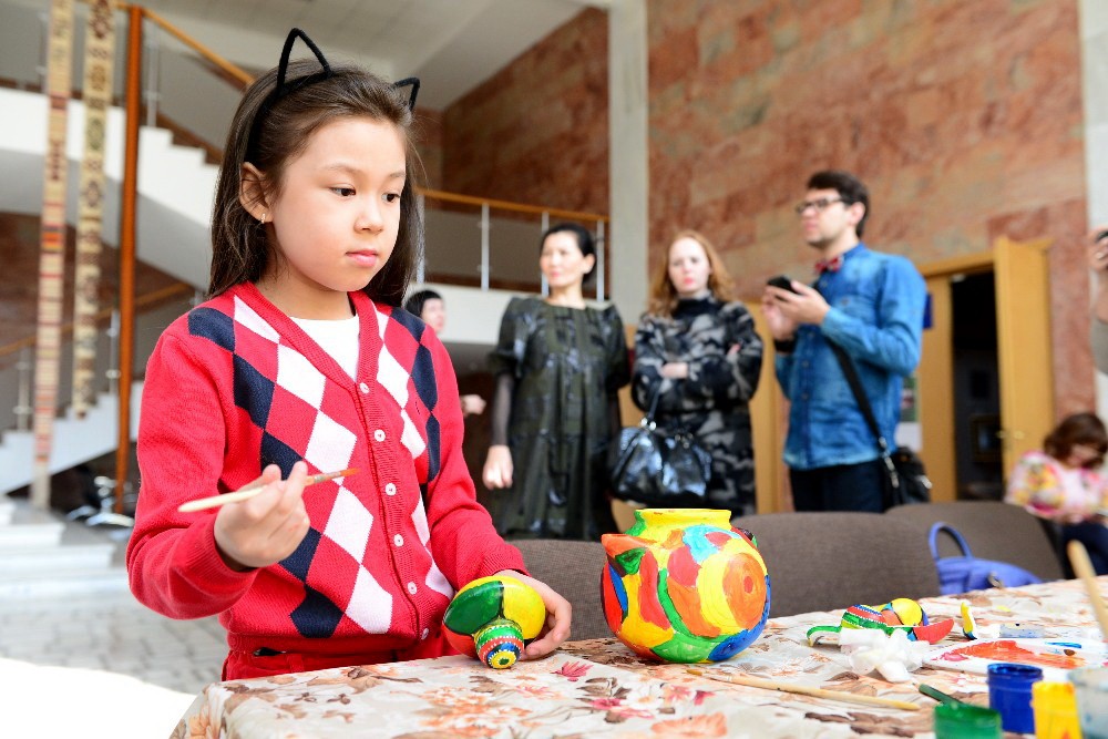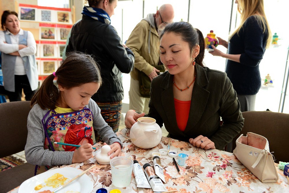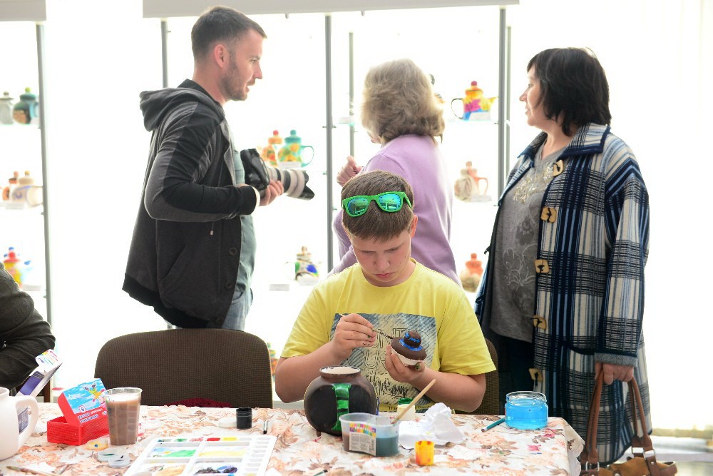 Тут же, на выставке, можно было принять участие в мастер-классе и с помощью художника Натальи БАЖЕНОВОЙ расписать свой чайник.