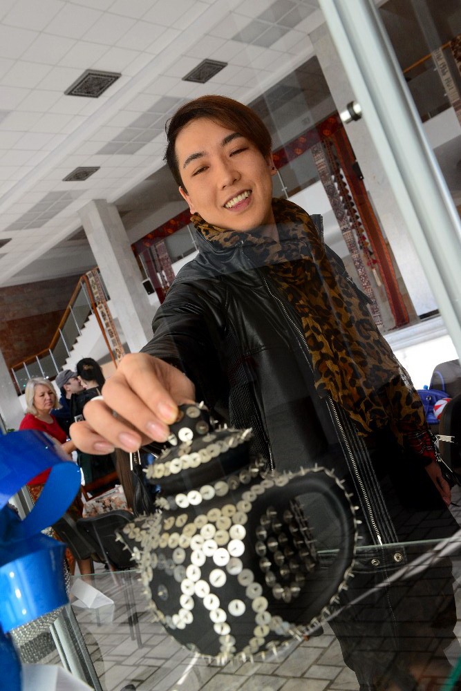 Благодаря фантазии дизайнеров и художников обычные чайники перевоплотились в произведения искусства. К примеру, Шамиль ГУЛИЕВ сделал сосуд в виде женской головы, а Жаркын БАЙМАХАНОВ украсил его канцелярскими кнопками.