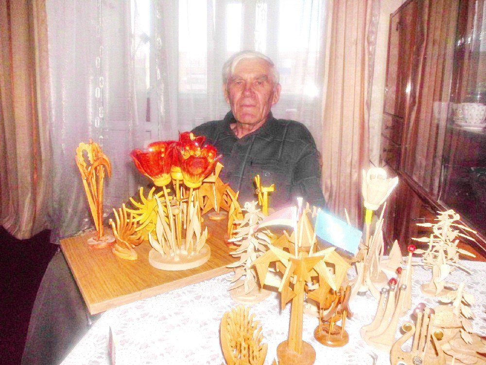 Актюбинский пенсионер Константин ПАШАЕВ (на снимке) имеет необычное увлечение - из деревянной тары для овощей и фруктов он мастерит уникальные футуристические фигурки. Древесных дел мастер мечтает об одном - чтобы одно из его творений установили на казахстанско-российской границе.