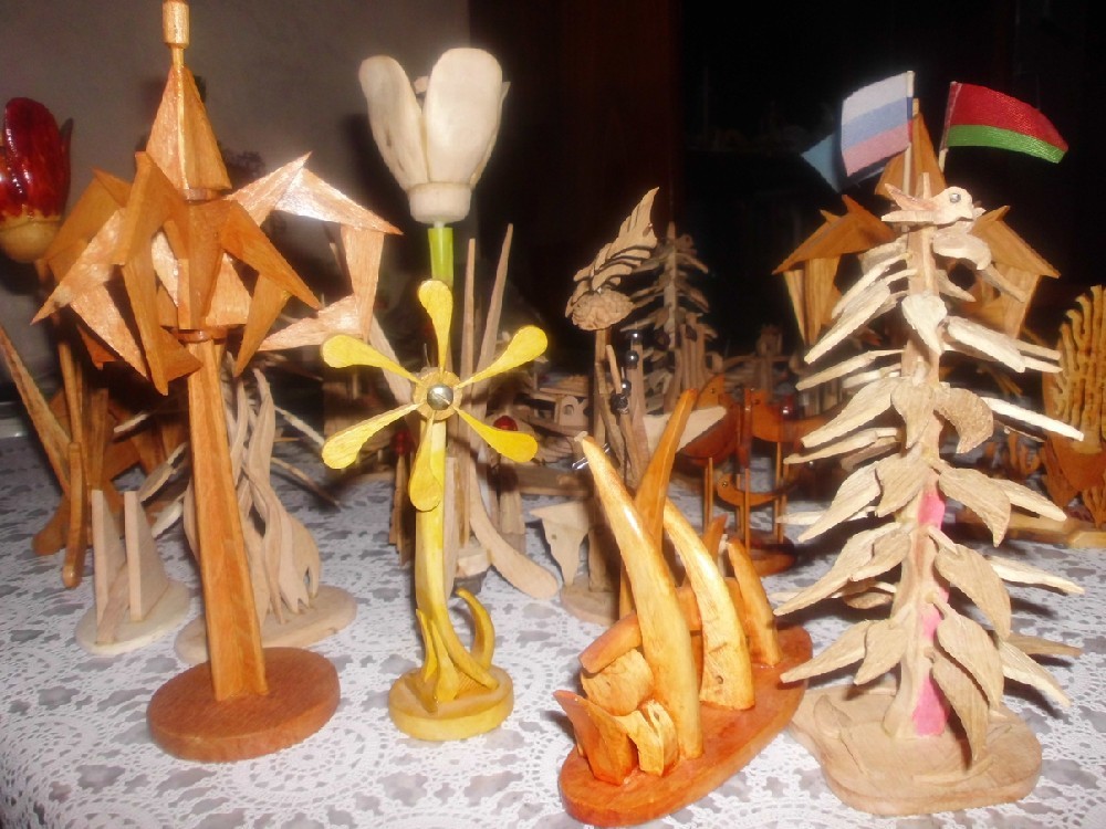 - Я у своего прадеда подмастерьем был, он в нашей семье считался настоящим умельцем. До армии помогал ему, учился, а потом поступил в вуз, и - на великие стройки, - вспоминает Константин Георгиевич. - Но примерно десять лет назад увидел, как продавцы выбрасывают ящики. Тара была из бука. Думаю, ну как можно такую красоту выбрасывать! Принес домой и смастерил крошечные фигурки.