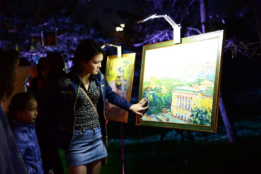 Никаких музейных стен - только небо, луна и искусство. На суд зрителей было выставлено 60 работ молодых художников.