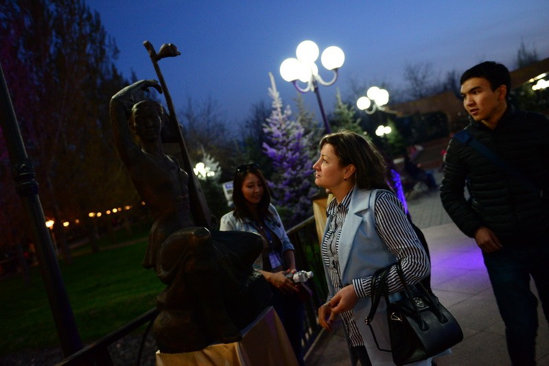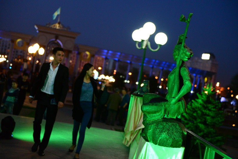 - Мы специально решили провести выставку вечером, - говорит организатор проекта Арман ТОКПАН. - Потому что при определенной подсветке все экспонаты обретают иное значение и иную подачу мысли художника. Главная задача фестиваля - продвижение молодых отечественных художников и скульпторов. Мы хотели, чтобы как можно больше людей увидели, сколько у нас талантливых ребят.