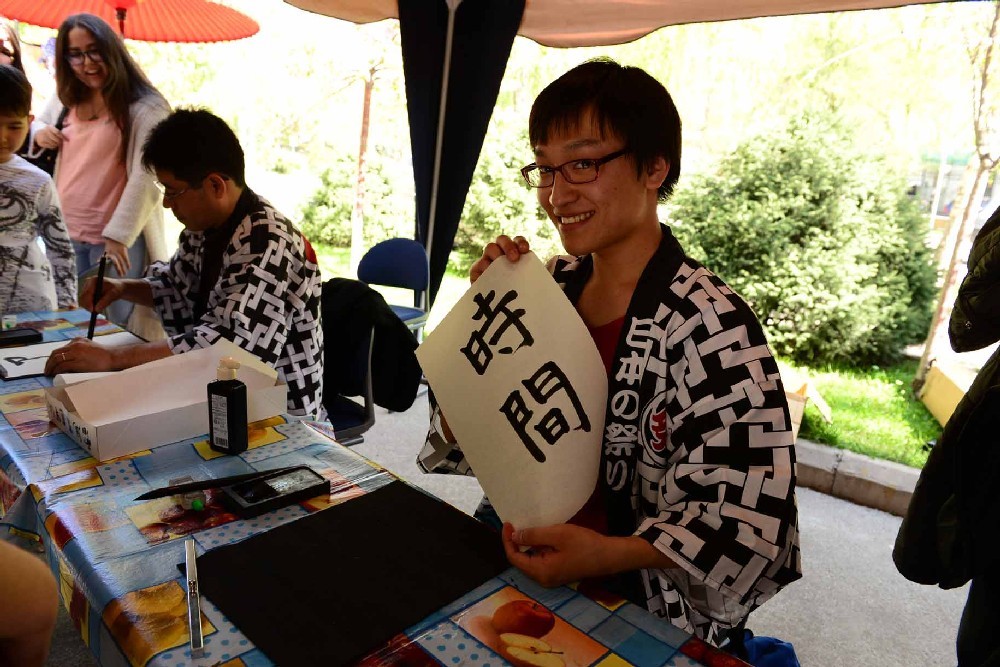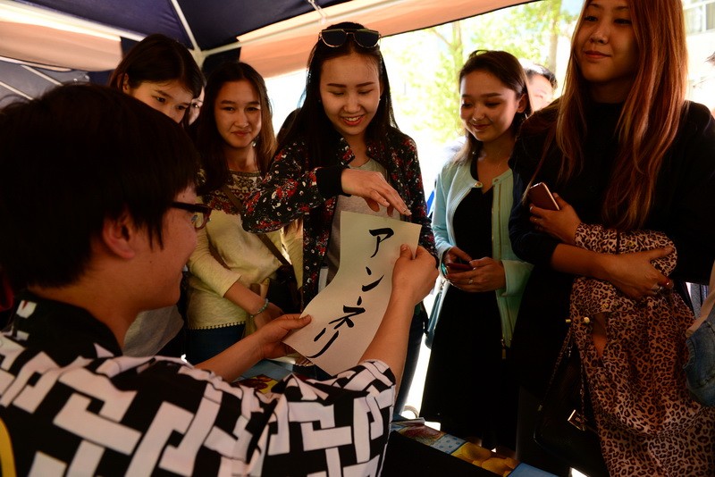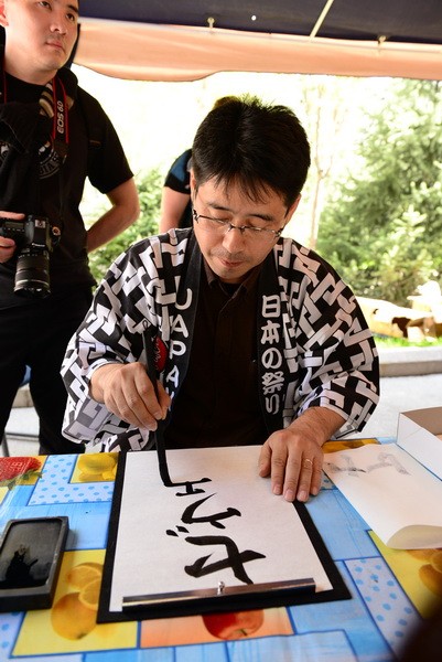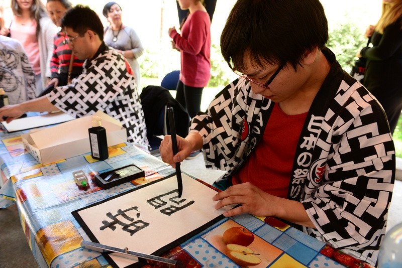 Особый интерес вызвала японская каллиграфия. Два мастера ловко выводили на бумаге замысловатые японские иероглифы.